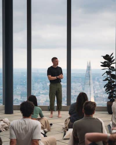 He has worked with clients including the Gordon Ramsay Group, NHS, Roxie Nafousi, Stella McCartney, and Warner Music, offering deep experiences that guide people back to their inner guidance.